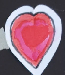 Ecco i cuori dipinti da piccoli artisti ed esposti oggi, 25 Novembre 2023, in Piazza Martinelli. In basso a destra, il cuore dipinto dal Maestro Greg.